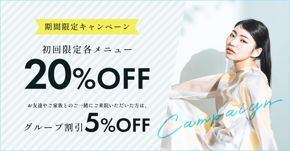 期間限定で、初回の施術に限り、選んだ施術の料金から20%OFF。
